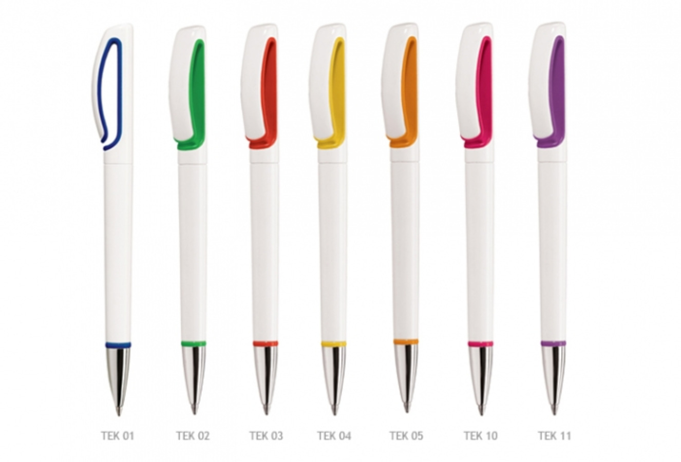 Biały solidowy korpus i klip, kolorowa solidowa część pod klipem, kolorowy salidowy pierścień i błyszcząca końcówka;