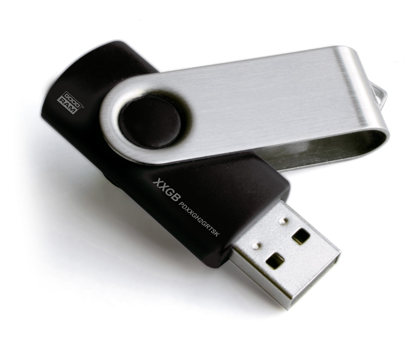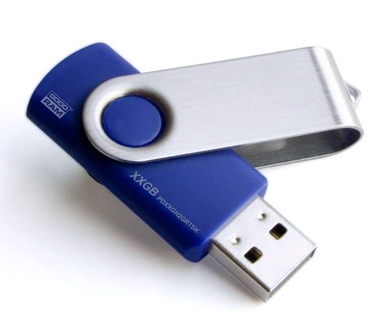 Pendrive USB 32 GB wykonany z metalu i plastiku.